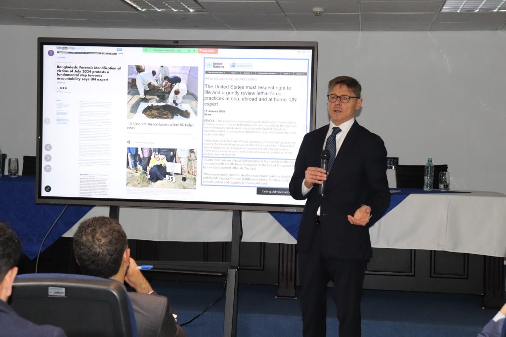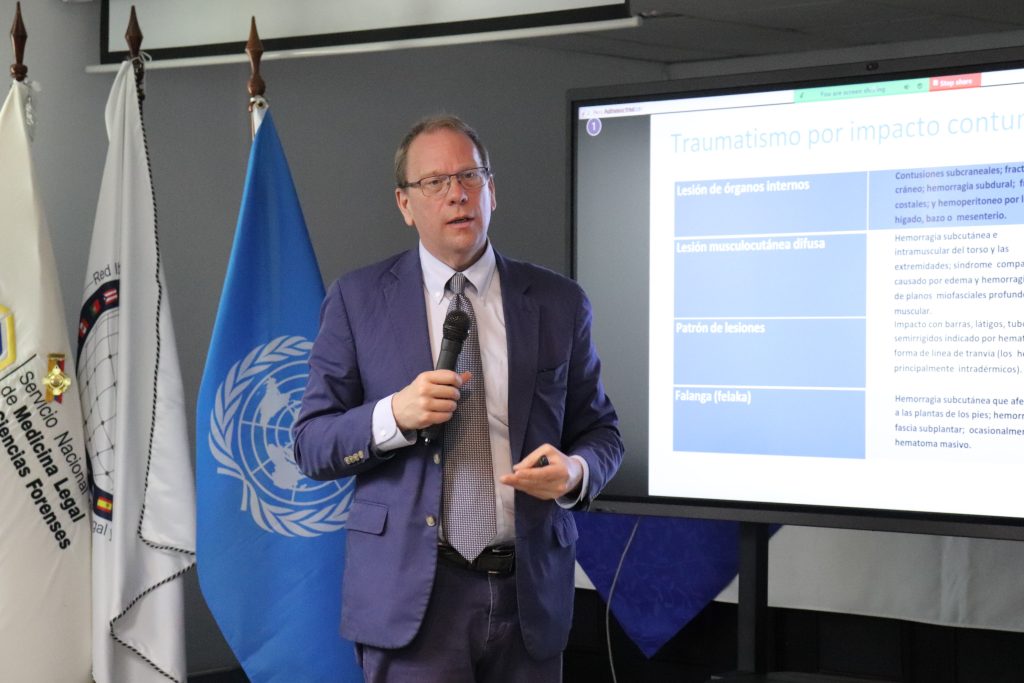 El programa académico es impartido por reconocidos especialistas internacionales, entre ellos el Dr. Morris Tidball-Binz, Relator Especial de las Naciones Unidas sobre ejecuciones extrajudiciales; el Dr. Michael Pollanen, Patólogo Forense Jefe del Servicio de Patología Forense de Ontario; y la Dra. Tania Delabarde, Antropóloga Forense del Instituto Médico Legal de París. Durante la inauguración, el Dr. Morris Tidball-Binz destacó esta iniciativa como una buena práctica para la región, resaltando el valor del componente práctico del taller para fortalecer las capacidades técnicas en la investigación de muertes potencialmente ilícitas.